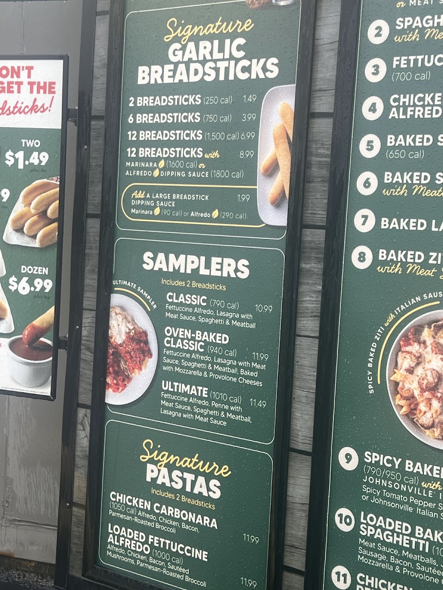 Signature Dishes: Dive into their Chicken Broccoli Penne, a rich medley of roasted chicken, broccoli, and baked cheeses, served alongside two signature garlic breadsticks for just $12.49. For those who enjoy a kick, the Spicy Baked Ziti with Chicken enchants with its zesty tomato sauce.